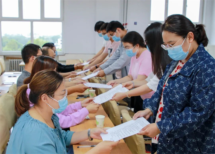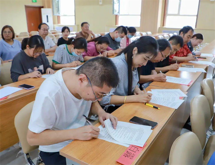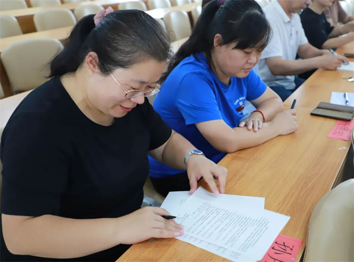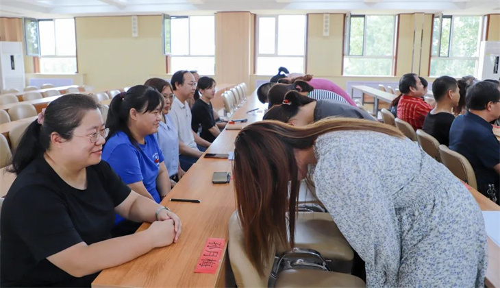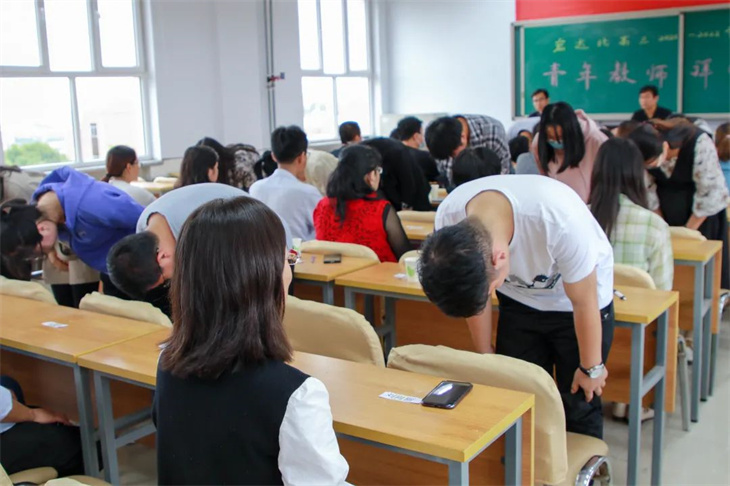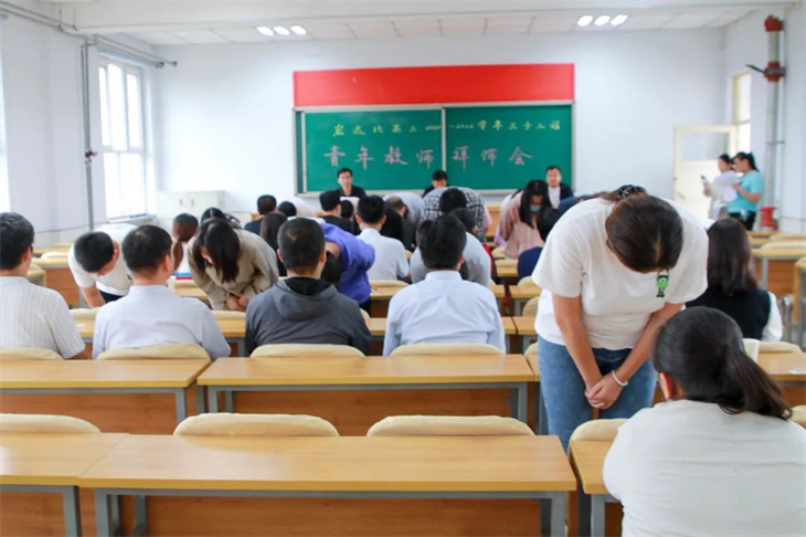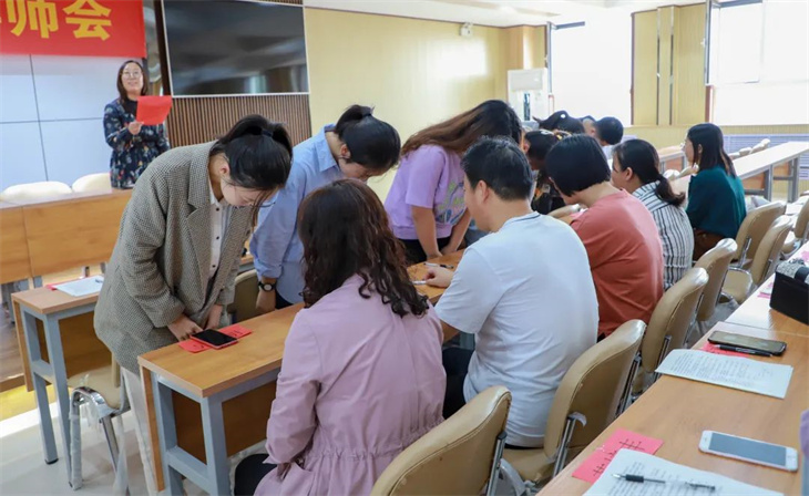 高二年级级部主任王娇、高三年级级部主任郝立成和高四年级级部主任李长峰宣读了《优秀师徒评选办法》,宣布将开展“优秀师徒”评选活动,并公布评判标准,以此激励师徒共同进步,提升教师专业化水平。