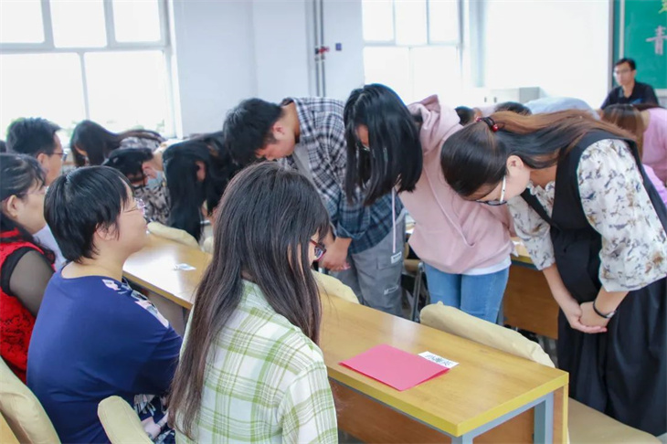 一拜,敬谢师傅日后辛勤栽培,倾囊相授;二拜,师徒同心,共创佳绩;三拜永记师恩,携手共进,为校添彩。最后以茶再表敬意。