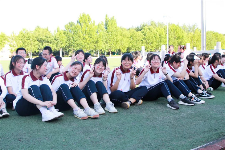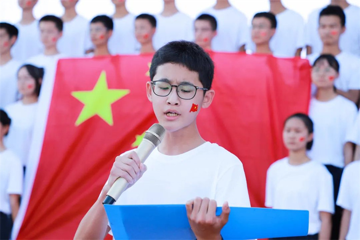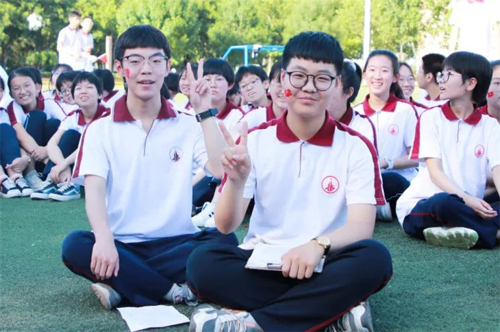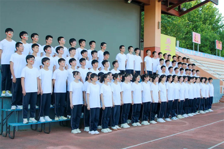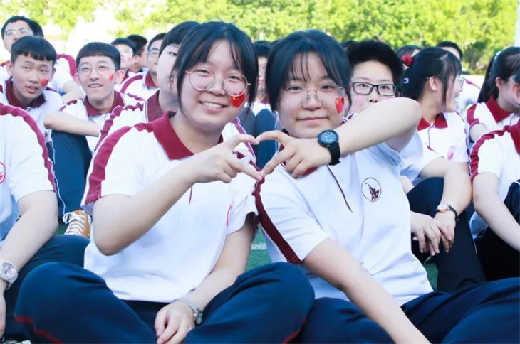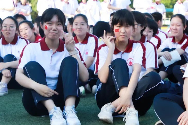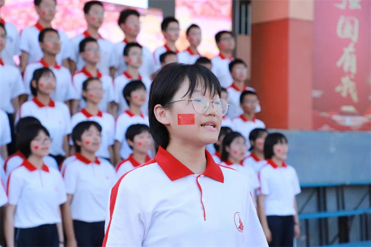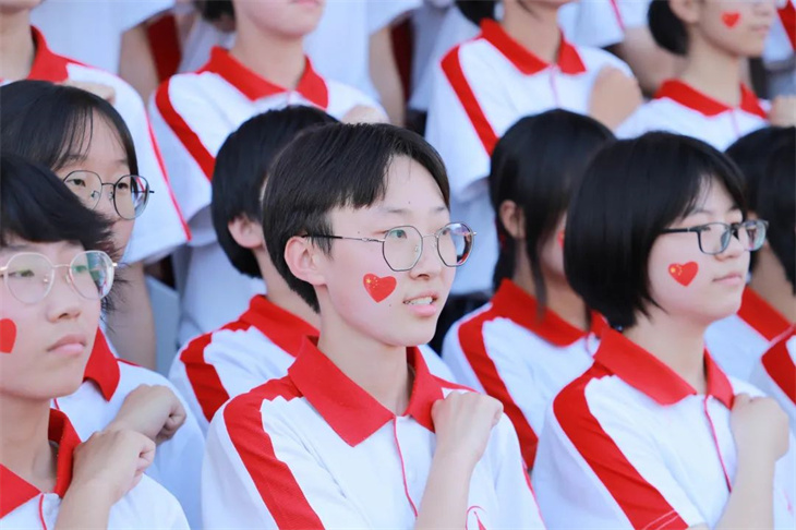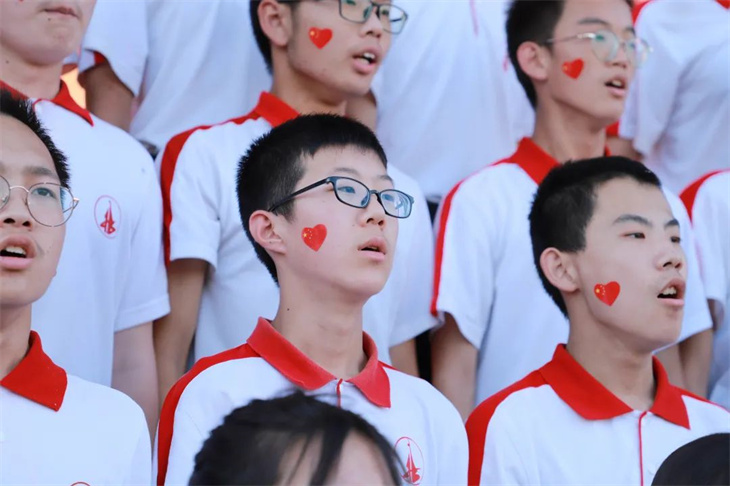 宏达学子脸上贴着五星红旗