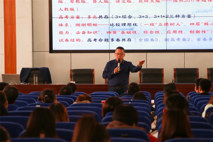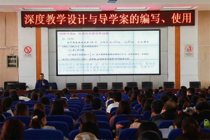 课程结束后,幸兴老师为我校教师做了专题讲座,以近几年高考题型变化为切入点,引出新高考、新教材下新的课堂改革命题,针对各学科特点,其深入讲解了导学案的使用、各步骤设计思路、课堂引领等理论方法,启发老师在“三新三旧(新旧教材、新旧课程、新旧高考)”的形式下,我们要主动适应高考新变化,备课要两套教材到位,以学生为主体、教师为引领,优化课堂教学管理。