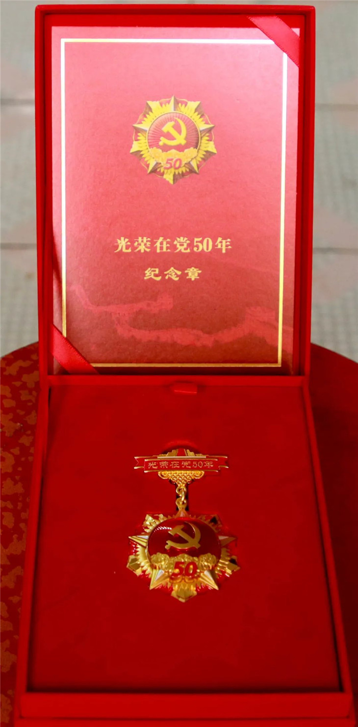 老人精神矍铄,向我们讲述了他曾经的砥砺前行的英勇经历,并向我们展示了获得的“光荣在党50周年”的纪念章。看着那枚熠熠闪光的纪念章,仿佛看到了其上承载的“父辈”们的光荣与梦想、责任与担当。