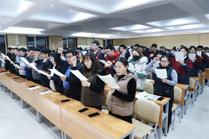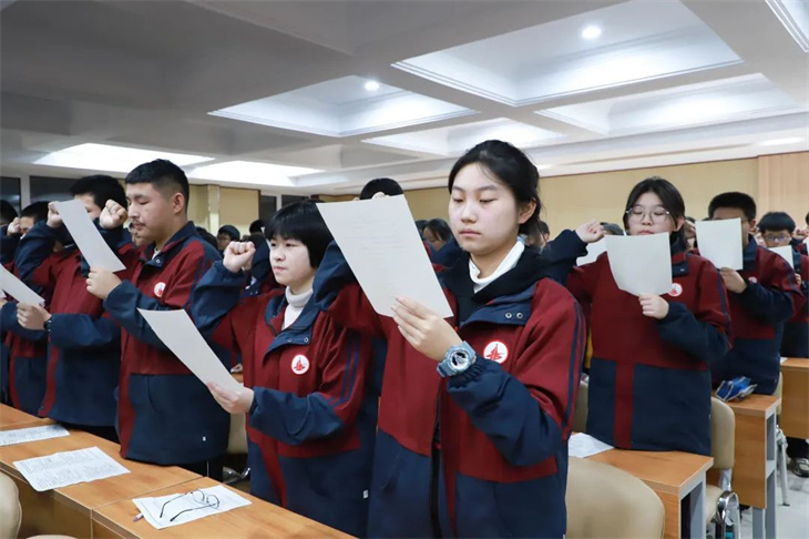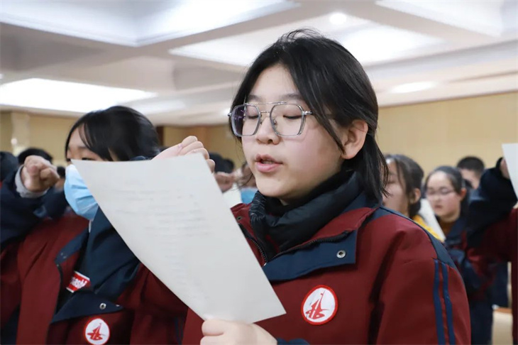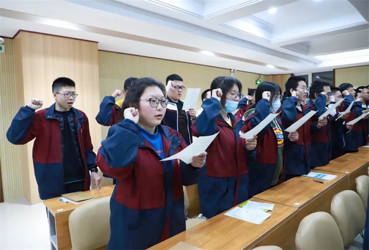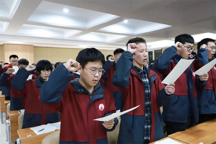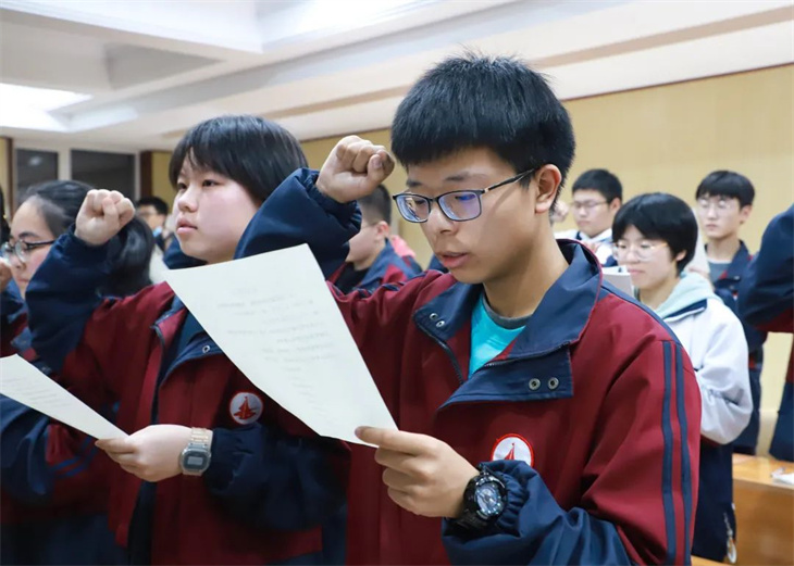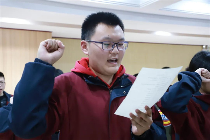最后,在王娇主任的带领下,我校高二年级学生以青春的名义郑重宣誓。那发自肺腑的呐喊,如雷贯耳,响彻整个会议室,凝聚着我校高二学子的万丈豪情,展现着他们舍我其谁的霸气!