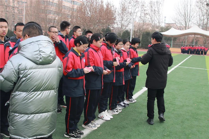 表彰大会上,申红娟主任先后向大家宣读了期中考试优秀学生名单、期中考试优秀班级名单和常规量化优秀班级。孙涛主任和卢敏主任一起为优秀学生和优秀班级颁奖,并和师生合影留念。