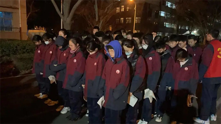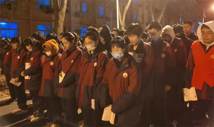全体学生为遇难者同胞默哀,寄托自己的哀思,表达自己热爱和平的愿望。
