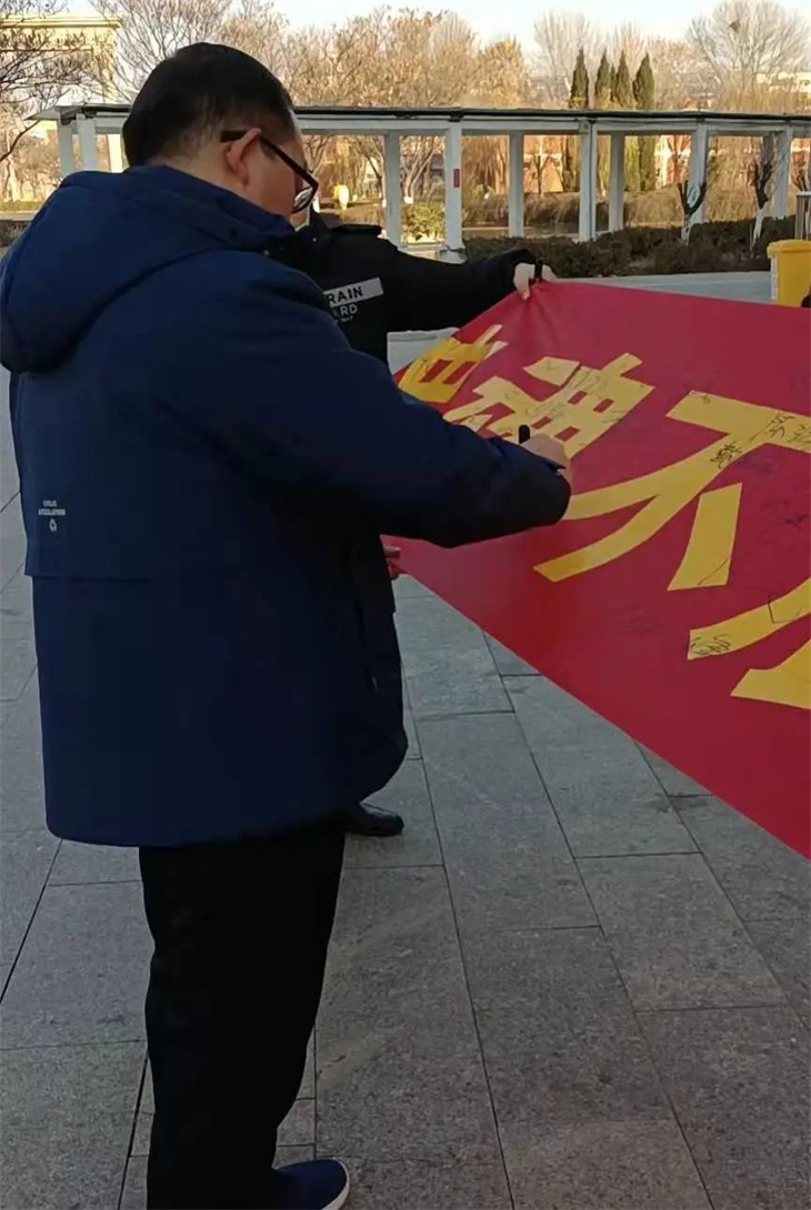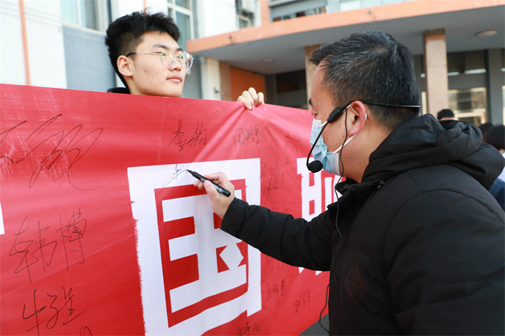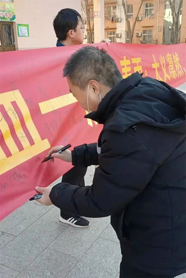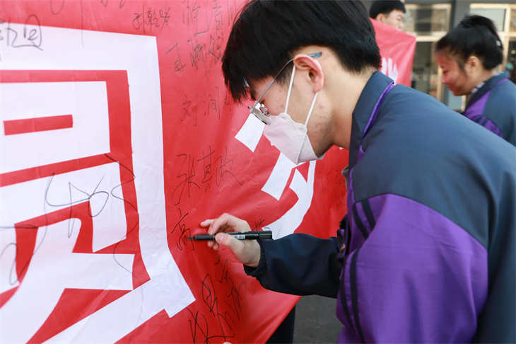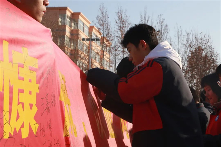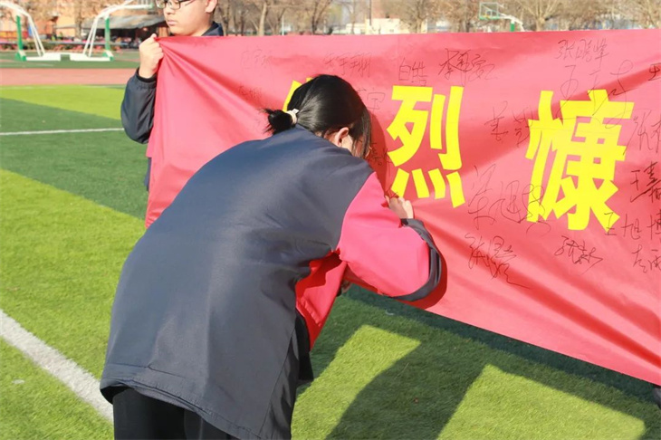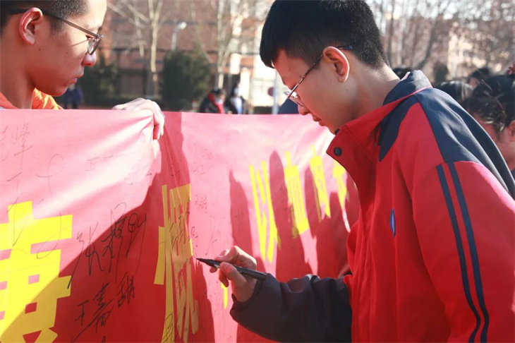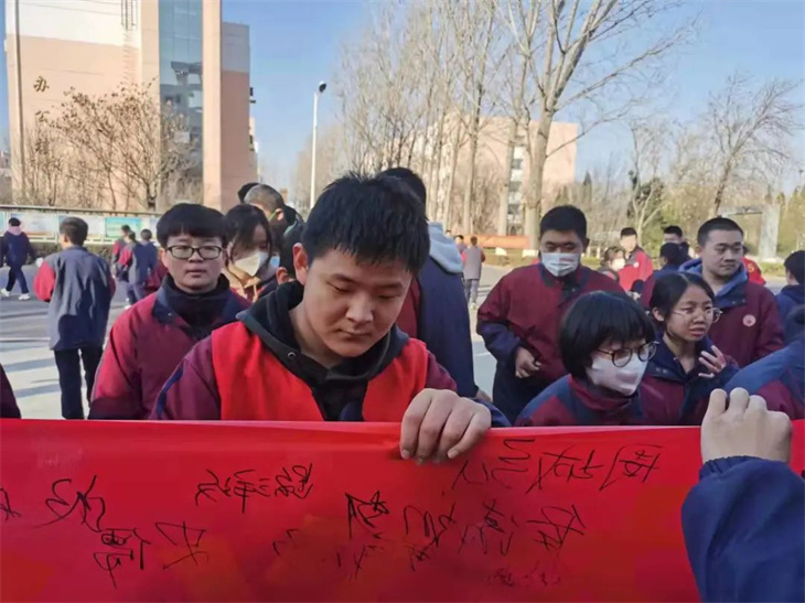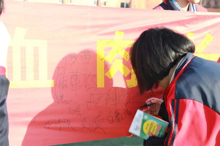 师生们在横幅上签字,表达自己铭记历史,振兴中华的决心。