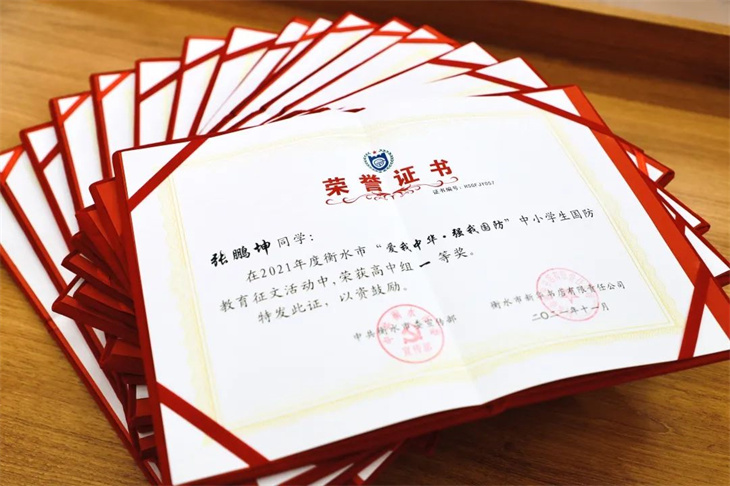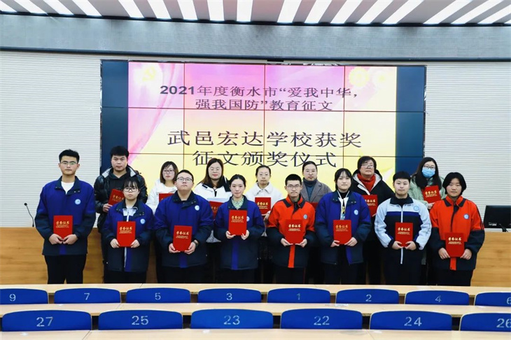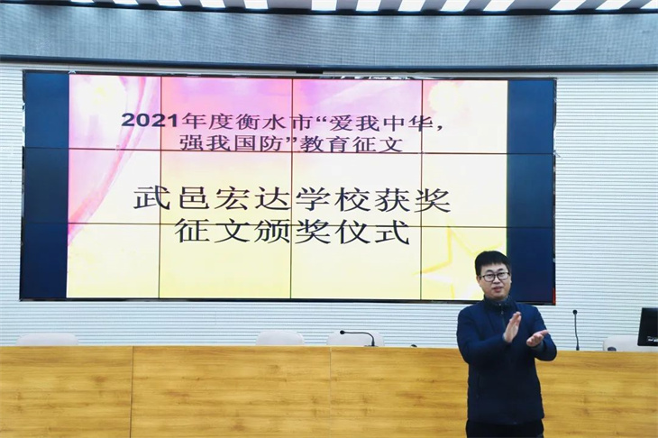 本次2021年度衡水市“爱我中华,强我国防”教育征文颁奖仪式激励了武邑宏达学校师生的创作热情,提高了全校师生的爱国主义情怀,也达到了宣传国防的作用。