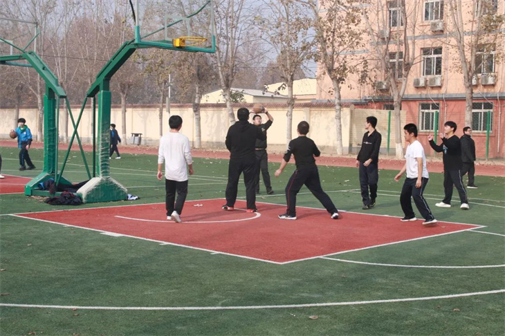 篮球场上几名学生正在紧张有序的打着篮球;跳绳组的同学们也一个个的跃跃欲试,想要挑战自己的极限次数;一旁的乒乓球组已经酣战了好几个回合,不分输赢。学生们一个个的都在和自己的同学好友切磋着,既锻炼了身体,又增进了同学间的友谊。