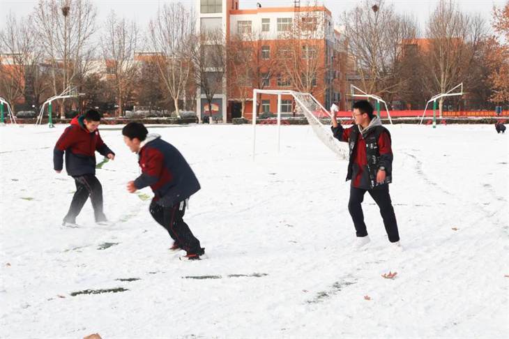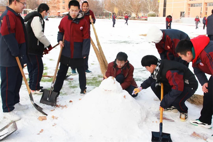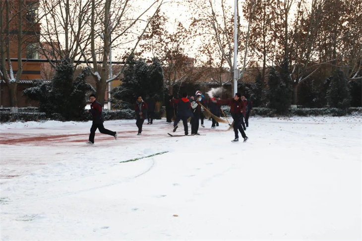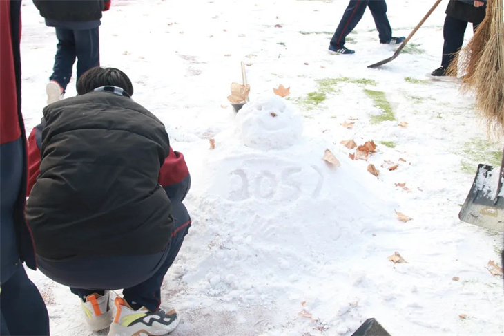 太阳升起来了,不少同学已经完成了打扫任务,他们开始了快乐的雪中游戏,大家一起堆雪人,打雪仗,尽情享受这冬至以来的第一场雪。