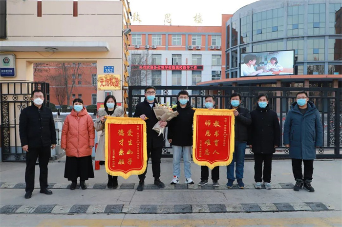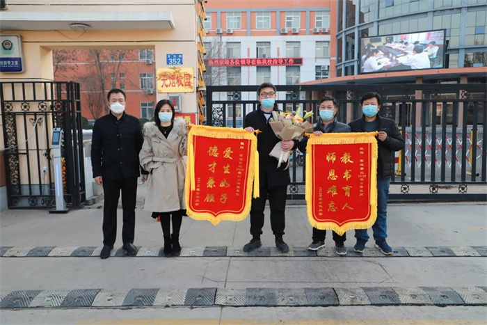 近日,我校高三年级130班学生家长来到学校,为班主任刘庆伟及130班全体教师送来了两面锦旗,“爱生如子,德才兼顾”、“教书育人 师恩难忘”充分展示了家长对我校老师的肯定,我校高三年级主任张延华、级部主任张伟、班主任刘庆伟及课任教师在校门口热情接待了前来的家长。