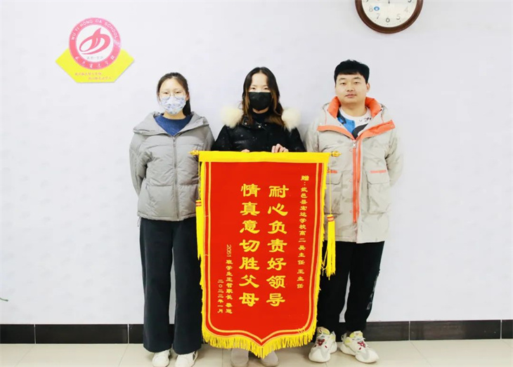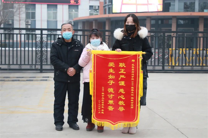 锦旗是褒奖,是肯定,更是责任和鞭策。杨老师说:“自己在收到锦旗的那一刻感觉特别高兴,这是家长对我最大的肯定。今后要把学生家长对老师们的理解与支持化作继续前进的动力,定不负家长们的信任所托,给家长、学校和社会交份满意的答卷。”