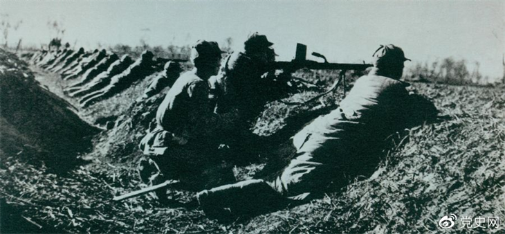 1948年11月23日至12月15日,淮海战役第二阶段,中原野战军在华东野战军配合下,全歼国民党军第12兵团——黄维兵团。图为主攻部队一部在前沿阵地上。