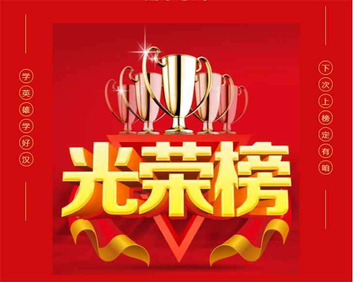 在我校高一年级学生勤学苦读,为梦想不懈努力的拼搏下,此次期末考试中,一大批成绩优异、进步巨大的学生脱颖而出,为表扬优异,鼓励先进,我校高一年级制作期末考试光荣榜,对在考试中表现优异的师生进行表扬,希望全体师生向身边的榜样学习!