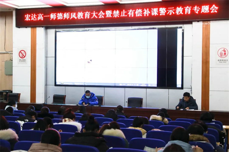 为深入贯彻落实教育部《关于开展在职教师有偿补课警示教育的通知》精神,进一步加强我校教师队伍师德师风建设,切实抓好在职教师有偿补课专项治理工作,近日我校高一年级召开全体教师师德师风教育大会。高一年级主任孙涛,级部主任卢敏和高一全体教师参加了此次会议。