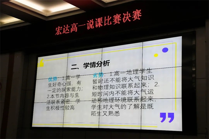 为了加强师资队伍建设,提高我校高一教师的教学活动设计能力、语言表达能力,展示个人风采,促进青年教师队伍专业化成长,同时也为了加强对我校教师教学创新意识的培养,提高教师的教育教学水平,近日,我校高一年级举办了教师说课比赛。