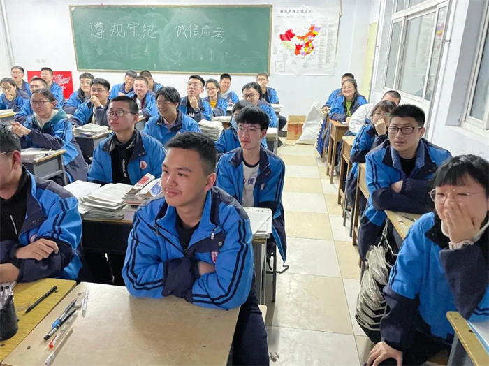 高三各科老师们以视频形式为同学们摇旗呐喊。备课组精心策划编排、富有学科特色的祝福,引发同学们的阵阵欢呼呐喊。接下来的一百天,每一位老师将忠于职守,甘于奉献,与同学们风雨同舟,静待梦想绽放,期待桃李芳香。