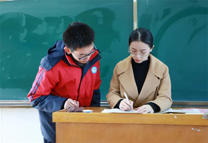 教师课间休息被学生们“占据”是每日的常态,这是学生孜孜不倦的求学精神,这是源于教师谆谆不倦的治学精神。他们从不厌烦同学们一次次的疑问,也从不埋怨工作时间一次次的延长再延长,他们的内心只有一个目的,那就是帮助学生攀登知识的高峰。