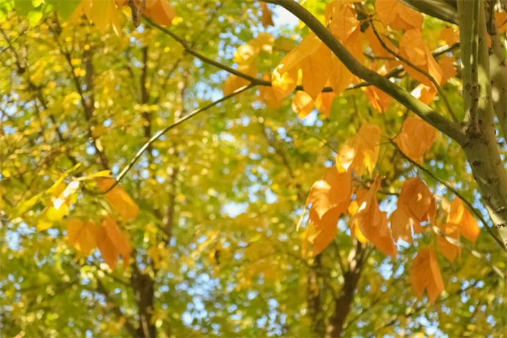 宏达的秋,是温暖的阳光穿过树梢的缝隙,洒下一片破碎的光晕,是傍晚瑰丽的霞光,缥缈着橙黄紫粉的梦境,好似九天仙子飘落的纱衣。
