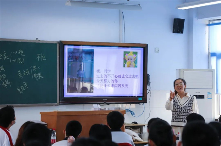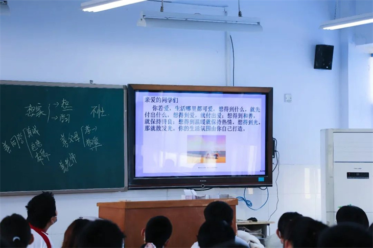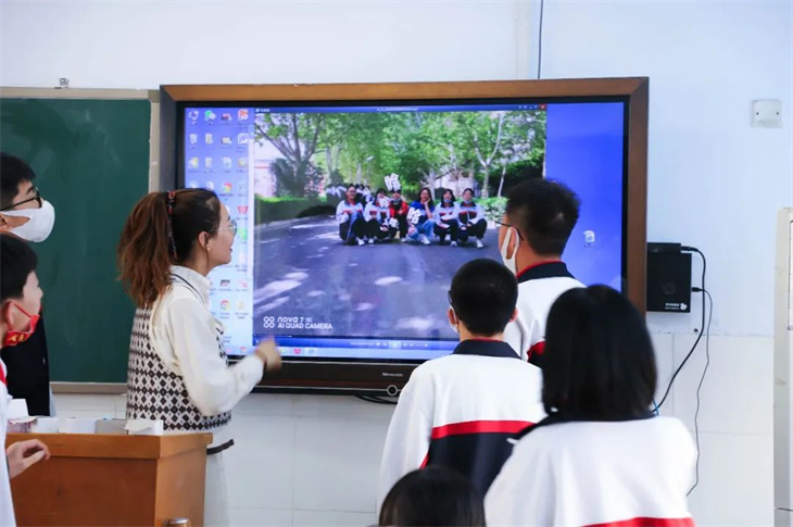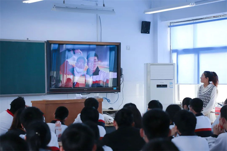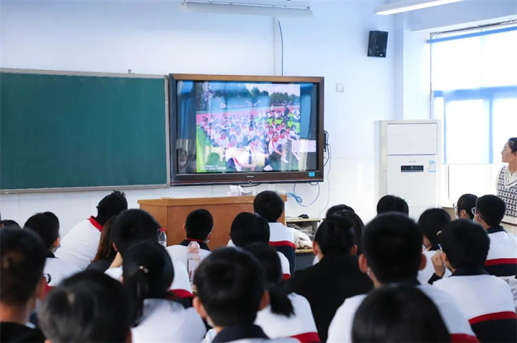 班会课上,于老师先是放映了一段回忆班级往事的小视频,激发起学生满满的幸福回忆,班会课就在这样欢快的氛围中拉开了序幕。