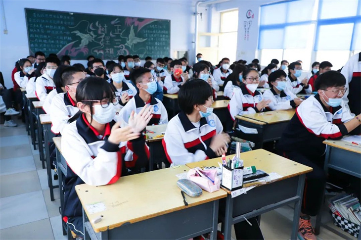 班会最后,于老师以全班一起做《New Boy》手势舞的方式结束了班会,同学们一个个都精神振奋,信心倍增,他们感谢于老师这一节课的开导和教诲,依依不舍地目送于老师离开了教室。