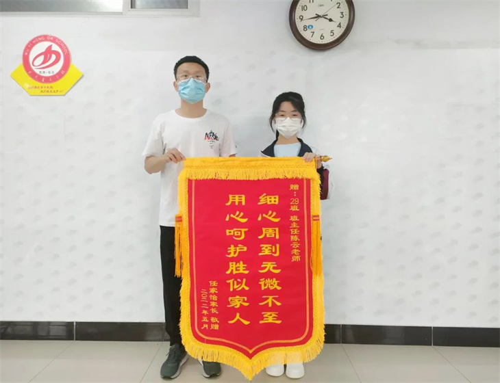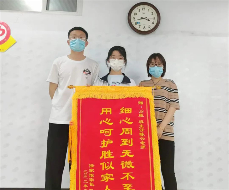 近日,我校高二年级任家怡学生家长通过邮寄的方式为29班班主任陈云老师送来一面绣有“细心周到无微不至 用心呵护胜似家人”字样的锦旗,充分展示了学生家长对班主任陈云教育工作的认可与支持。