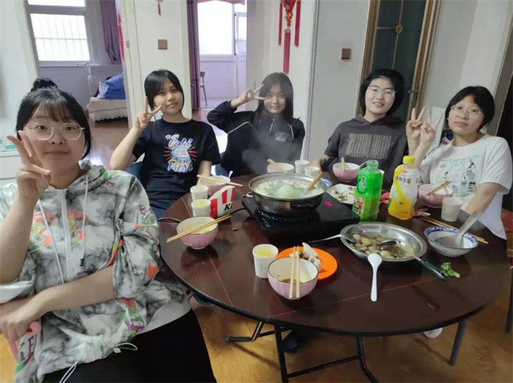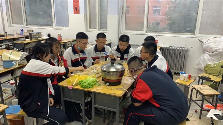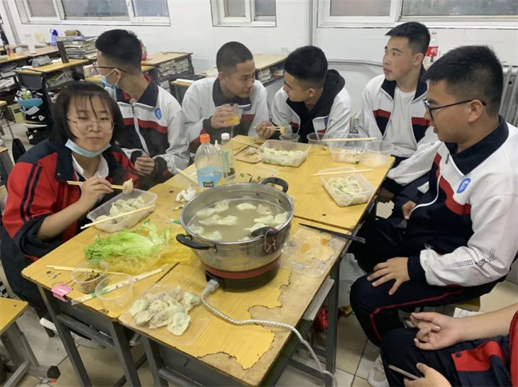 爱在衡水,感动中国!在这样经济为首的社会背景下,在衡水这个不大的地方,经济并不富裕的城市,不但有着衡水教育的美誉,更有着大爱无疆美名!优秀的宏达学校、睿智的领导干部、负责任的宏达老师、拥有大爱的宏达家长,一定会教育出出色的孩子们!放假第一天,宏达高一2135班的谢老师带着留校的孩子们去理发,买了手工包饺,孩子们久日以来从未吃过的饺子,这可吃香了,拌凉菜,倒饮料和各种好吃的满满的放了一桌子。细心可爱的谢老师还专为一名回民同学单做了小灶饭,孩子们围坐在课桌合拼成的超大方桌前和远方的家长们视屏聊天,只见谢老师一筷子一筷子的往孩子们碗里夹饺子和肉。谢老师和孩子们共同举杯、欢声笑语、其乐融融!谢老师这一天也释怀了,他既像一位慈祥的父母,又像一位和蔼可亲的大哥哥,没有往日的严肃。谢老师我想对你说:“你笑起来眼睛更眯小了,圆呼呼脸,你笑起来真好看”!看到孩子们如此放松高兴,脸上洋溢着甜美的笑容,远方家长们无比的开心和放心!真心的谢谢您---我们的小帅老师!您为孩子们辛苦啦!同时,班级群里也发来无数衡水妈妈带着儿子们,女儿们吃火锅、包饺子、去购物的图片和短视。最令人感动的是:老师和妈妈们从早洗到晚无数的脏衣服、鞋子,将手磨起皮又红又肿的看了好让人心疼...这一切细致入微对孩子们的照顾,家长们都看在眼里记在心间!您们让孩子们体验到家的温暖,孩子们从内心感受到满满的爱意,让孩子们深深体会到了——久违的母爱!