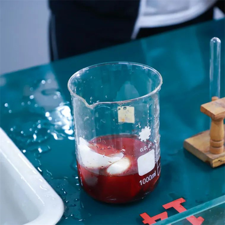 在实验结束后,大家不忘把实验所产生的废弃物放在专门盛放废弃物的大烧杯里。王老师教育大家,养成良好的实验习惯很重要,要从身边的小事做起,将实验器材放归原处,同时要保持学校实验室的整洁干净。