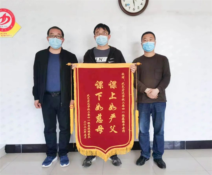 锦旗是褒奖,是肯定,是鼓励,是力量,更是责任和鞭策,也对学校全体老师提出更高的要求,勉励老师们责任至上,再接再厉,不辜负家长和社会的厚望!