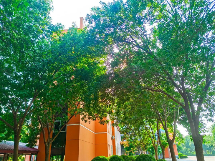 红瓦白墙绿荫旁