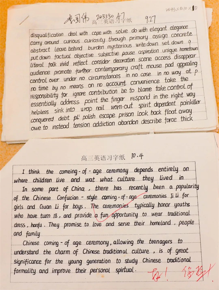 翻阅学子们的笔记本,字迹工整,条理清晰,每一份都展现了同学们端正的学习态度和积极上进的进取心,见证了同学们在这一段时间的收获与成长。