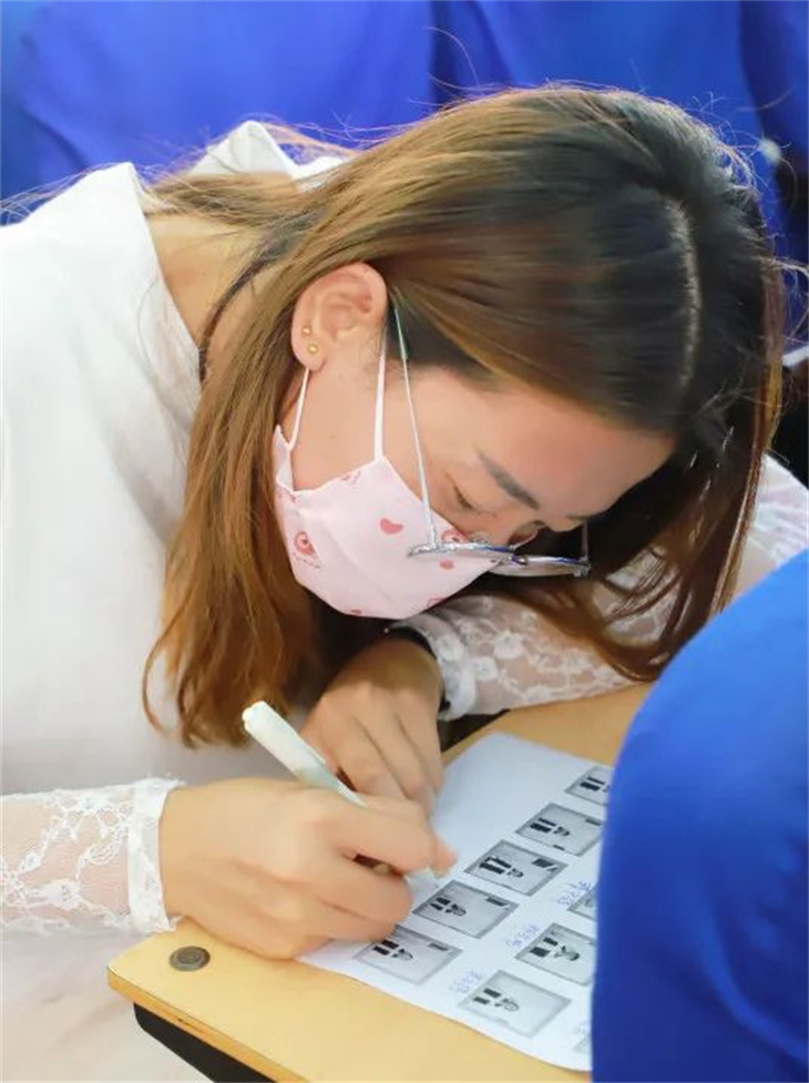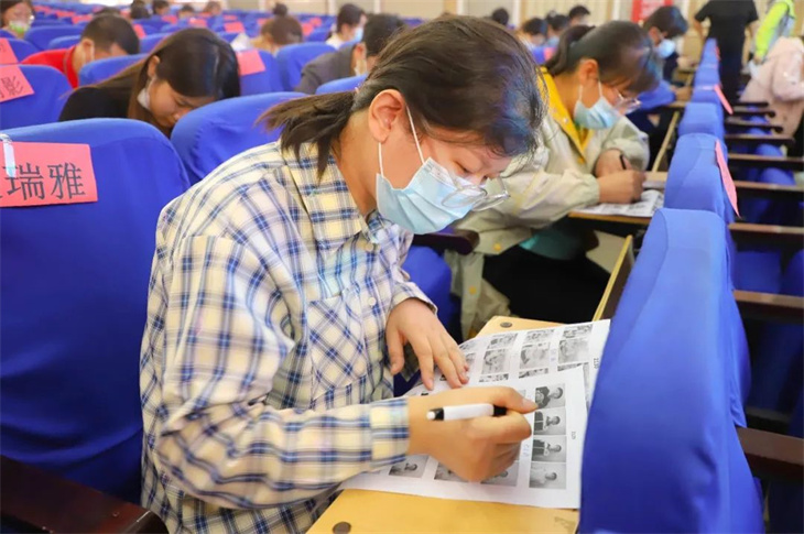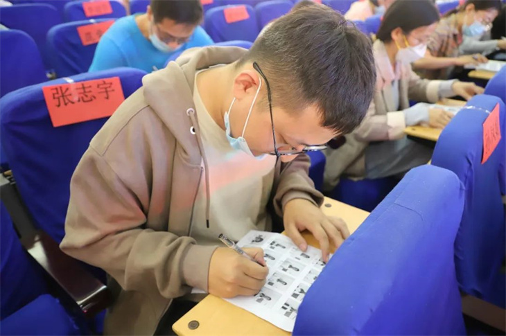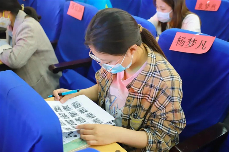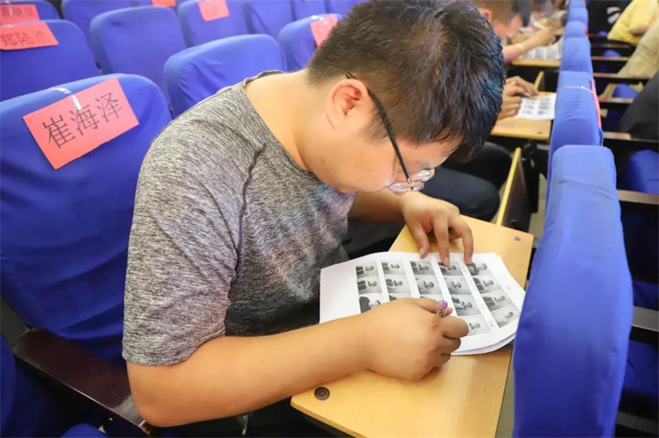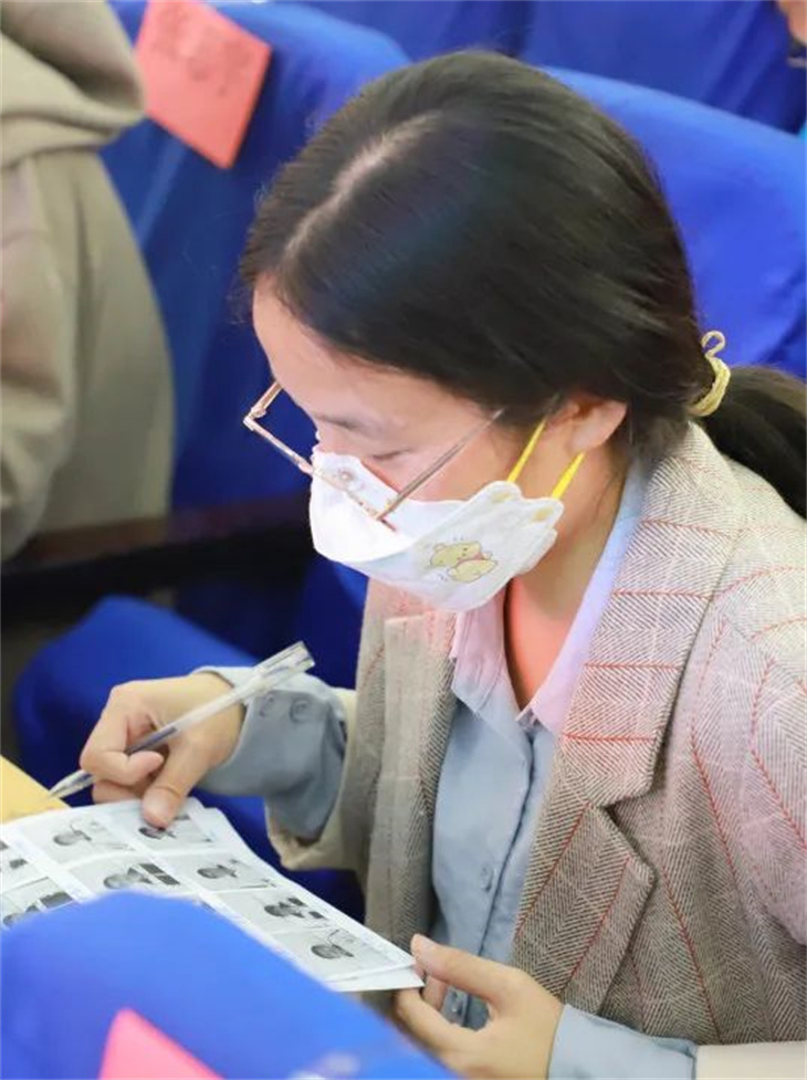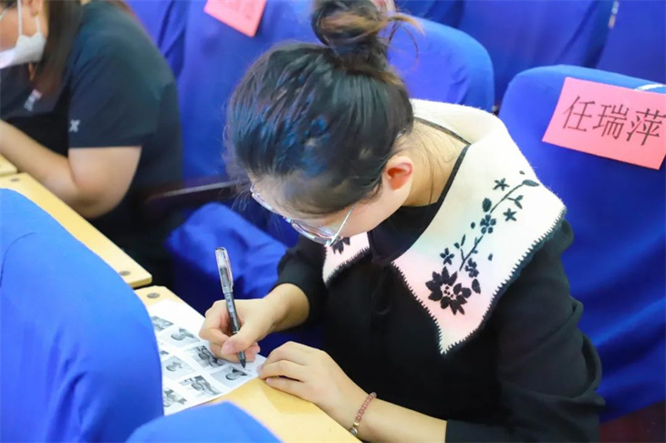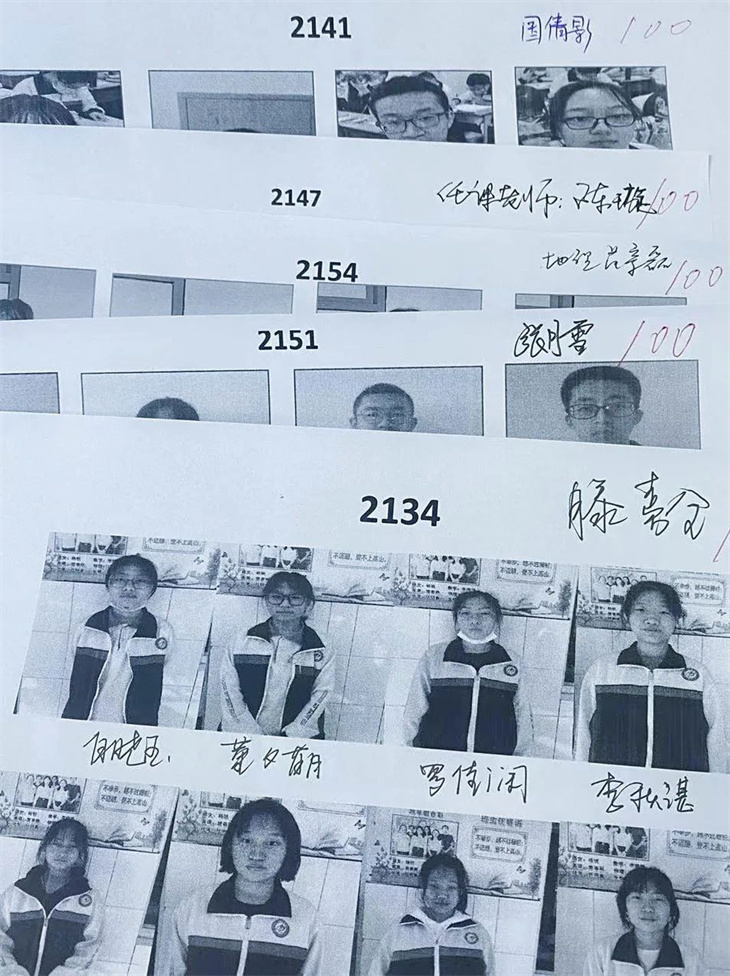 本次刷脸认学生活动按照考试的标准,年级部的干事将提前准备好的学生照片分发给每位老师,老师则在照片下面写上学生的名字,在规定时间内看哪位教师写的对、写得多。