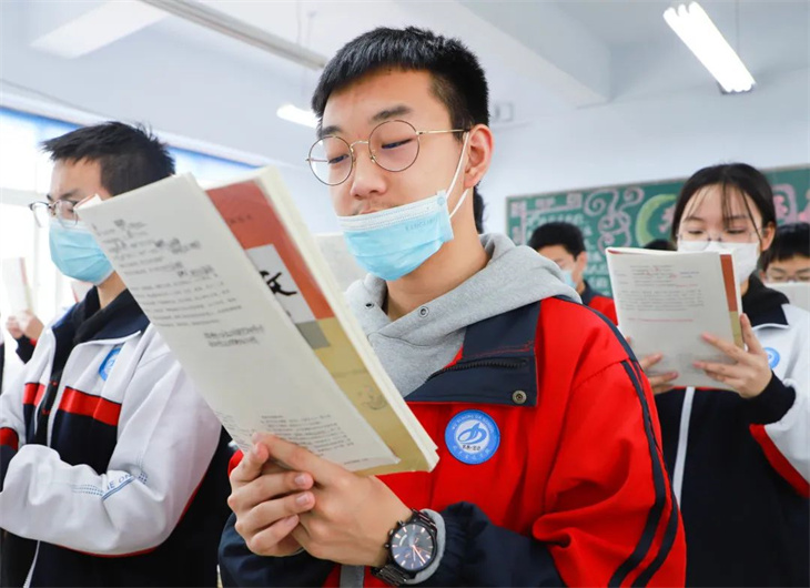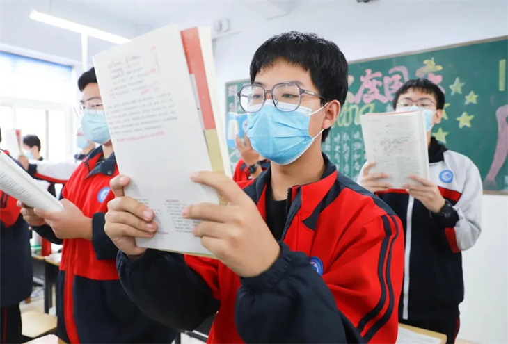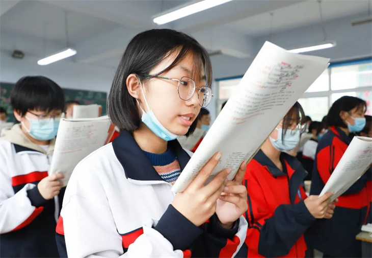 以大声朗读的方式强化记忆,加之专心致志的思考进而理解感悟,有口有心,口读心记,百遍熟读,百遍加深,晨读中的同学们状态满满!