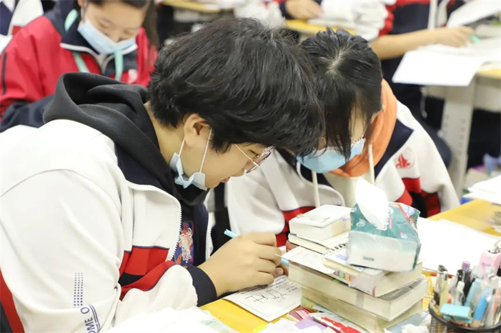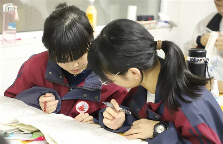 对宏达学子而言,课间、课后都是整合、吸收和补充知识的战场。下课之后,同学们有的和同窗互相讨论课上的难题,准备开启大脑风暴将知识融会贯通;有的则向老师询问,答疑解惑。
