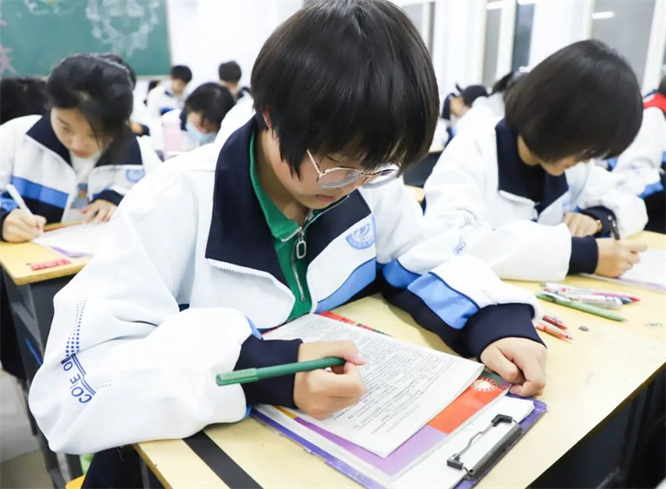 自习课上,同学们低头写字,眼不离笔,笔不离纸。他们奋笔疾书,攻克难题,在宁静、高效的学习氛围里,你追我赶,积极上进。