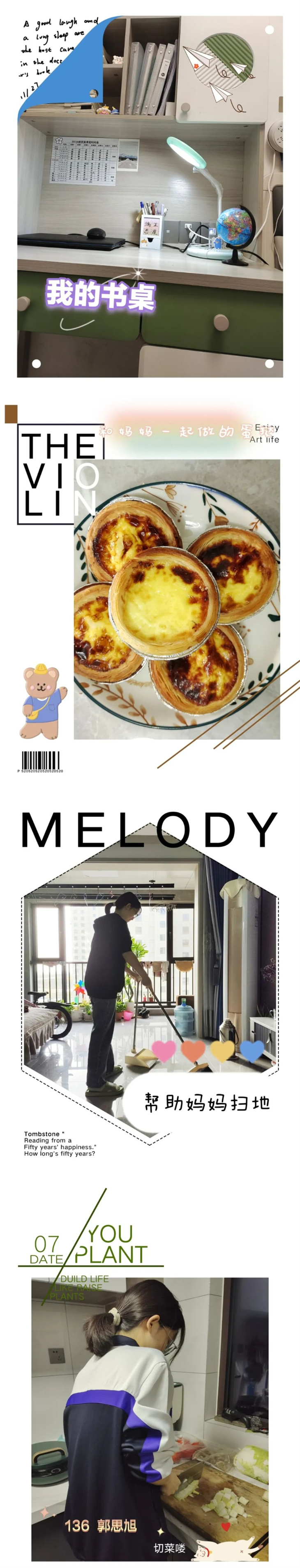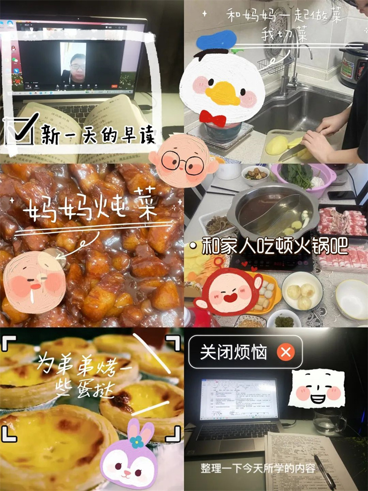 宏达学子或是做一顿美食或与父母下棋或打扫卫生,一家人其乐融融,快乐多多。