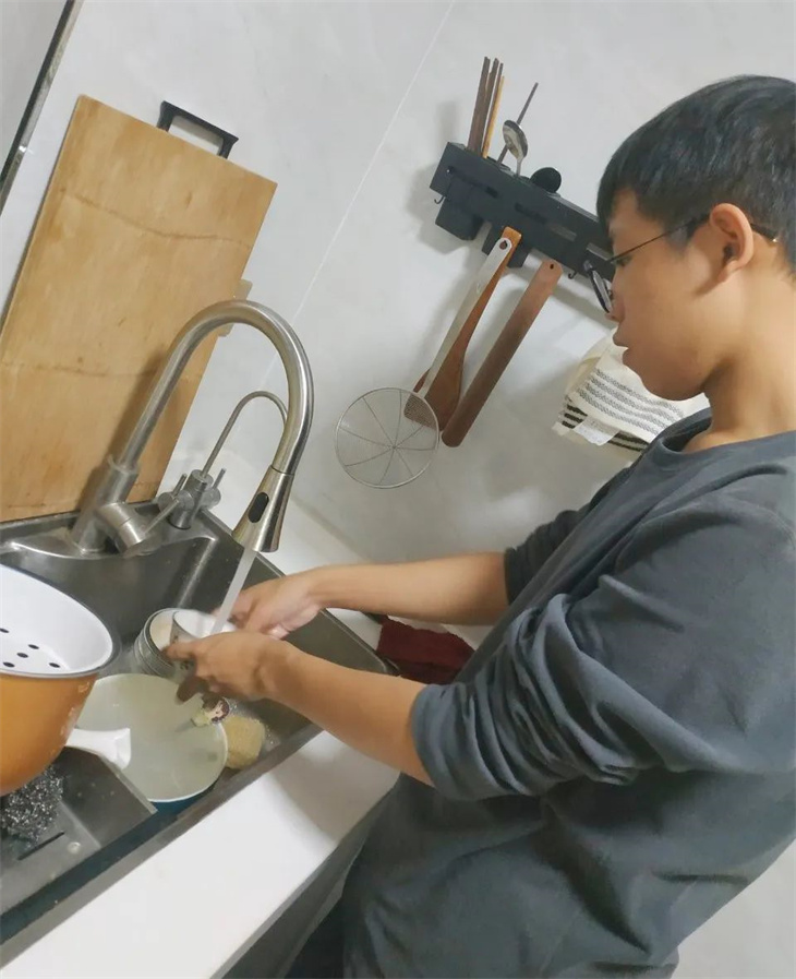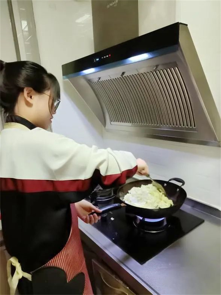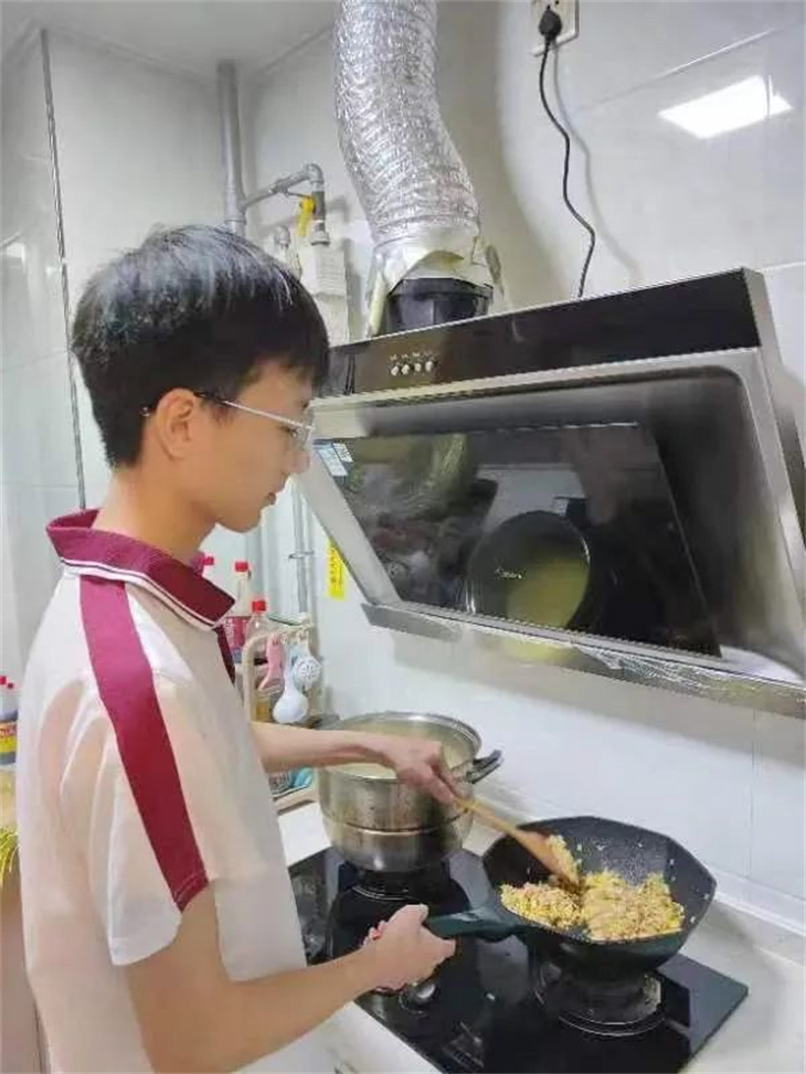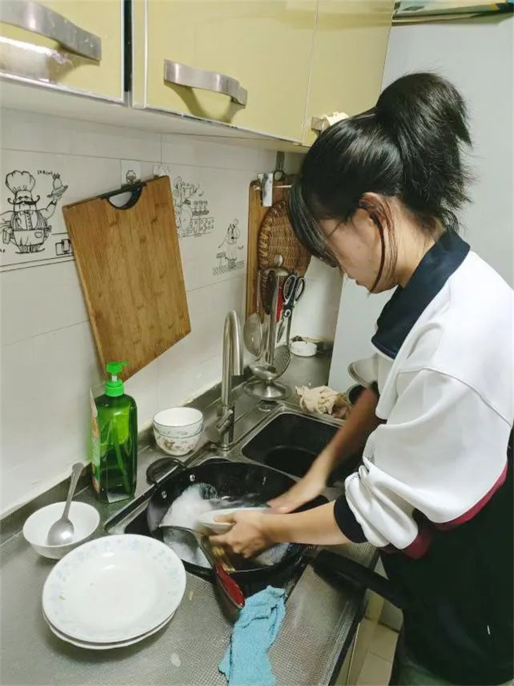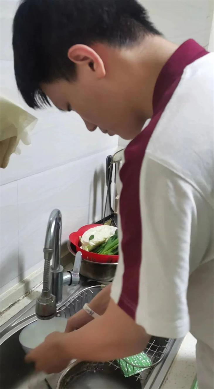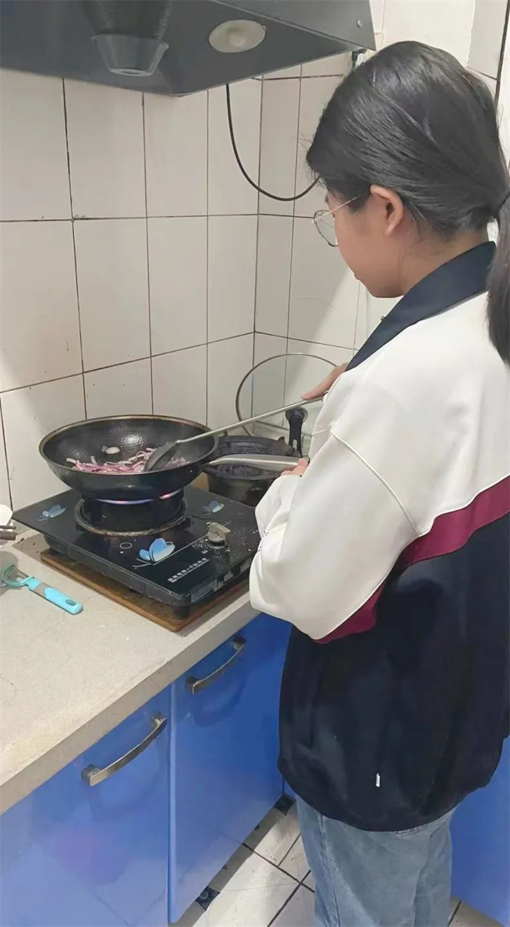 瞧,学生们自己洗菜、择菜,切菜,解锁了“下厨”新技能。有的学子更是烹饪出一道道美味佳肴,乐此不疲,给家庭增添了温暖、和谐、欢乐的气氛。