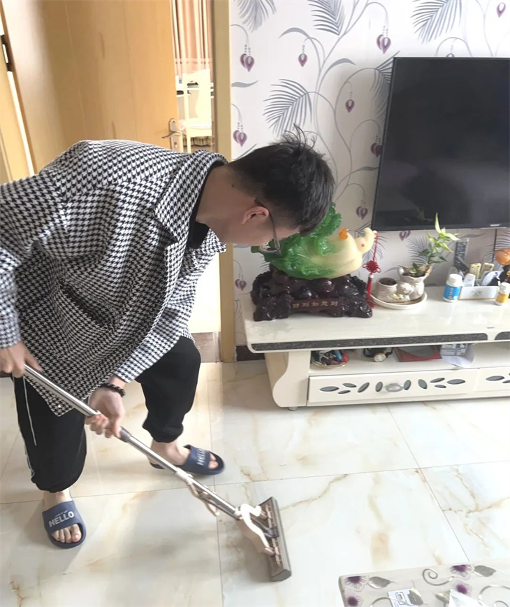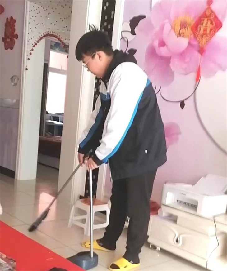 他们学着爸爸妈妈的样子,拿起了拖布、扫把,小心翼翼地打扫着地面。小小的拖把,承载着孩子们对家庭的担当。
