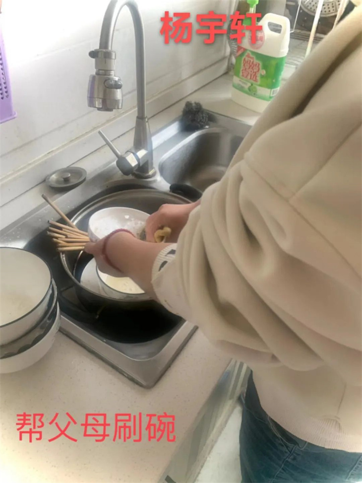 劳动最光荣,在孩子们看来,力所能及的家务活对他们来说不在话下。家务劳动不仅提高了学生的生活能力,还融洽了亲子关系。