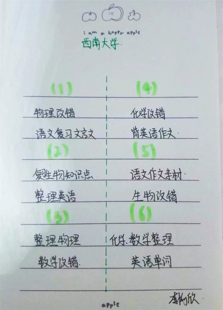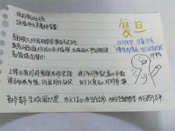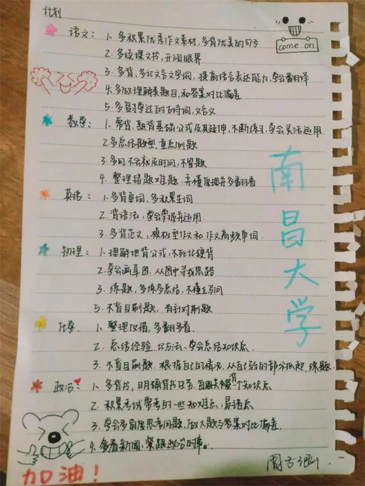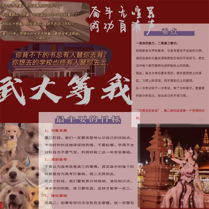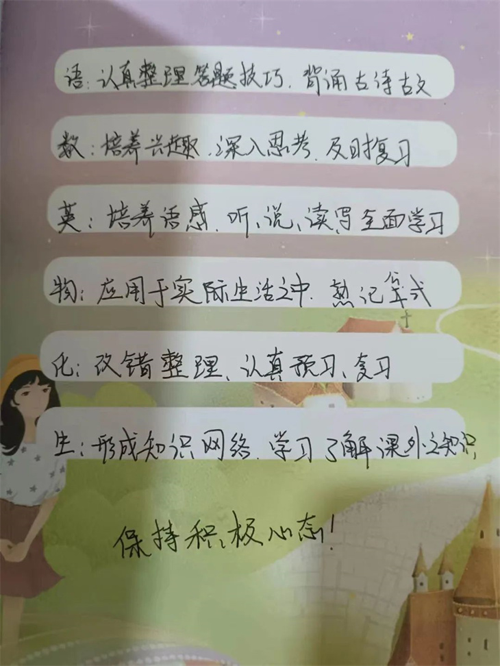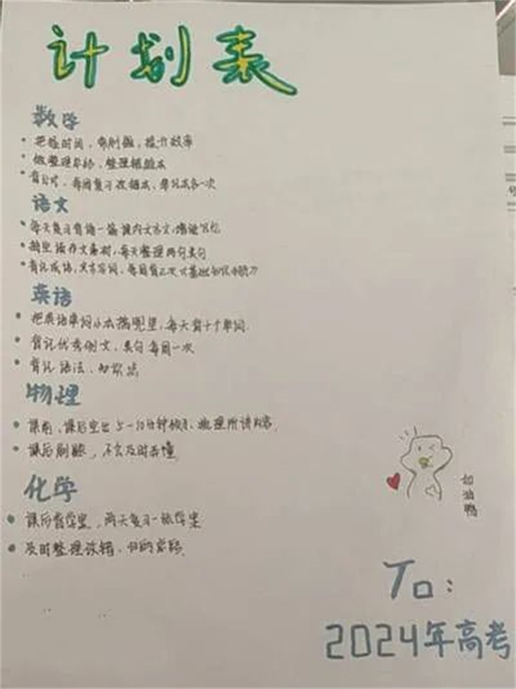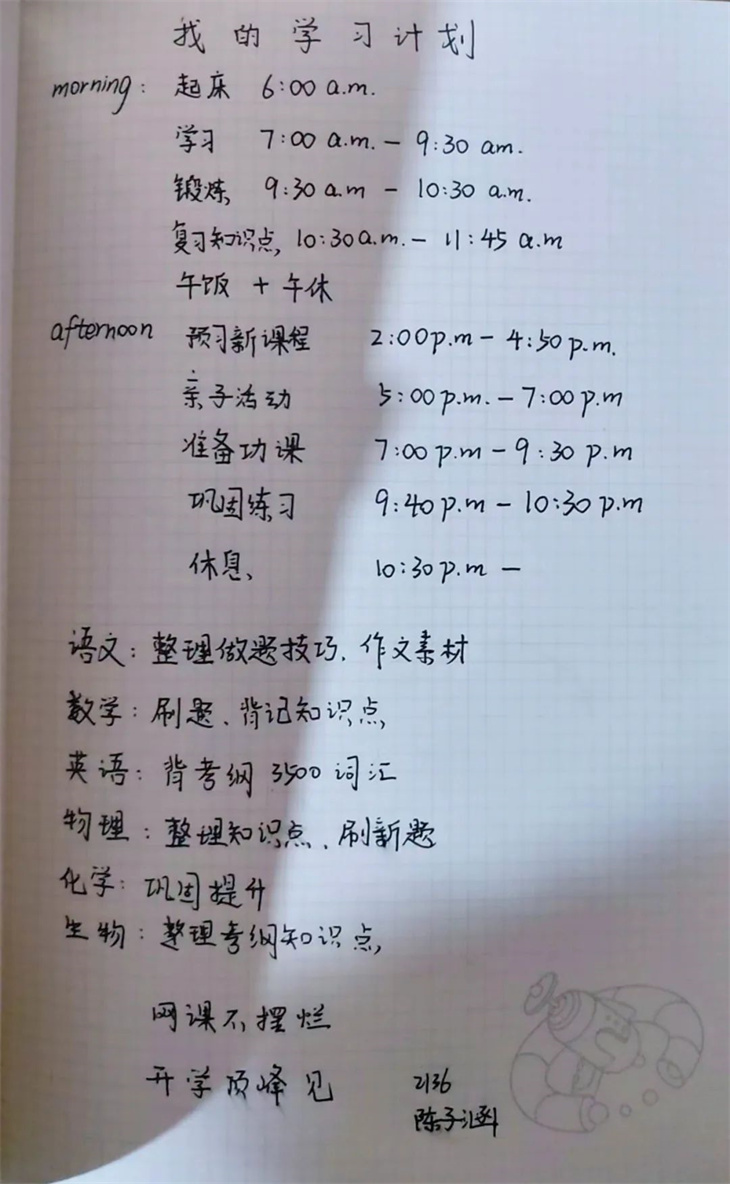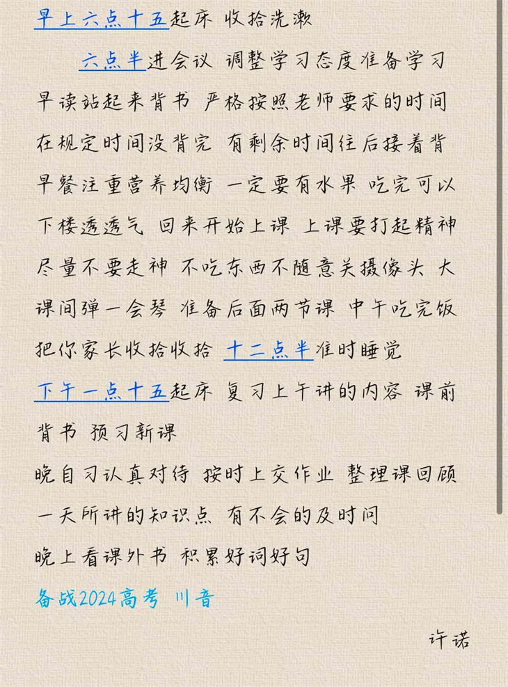 同学们专注于每天的计划,制作专属自己的行程表。将自己的起床、吃饭、上课、作业、放松…..统统规划进来。不做怯懦的退缩,不做无益的彷徨,不负父母的期盼,不负恩师的厚望,不负自己的青春,珍惜每一天,过好每分每秒。
