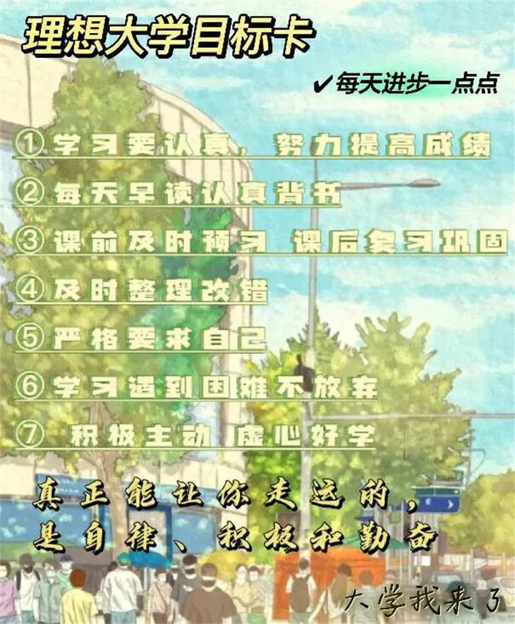 高考也是一场修行,一条种着梦想的路,虽千万人,吾往矣。居家学习,同学们分学科,根据自己当下的成绩针对性地制定了高考目标,将每一次小小的进步积累起来,待到高考之时,定将会是一次巨大的超越。