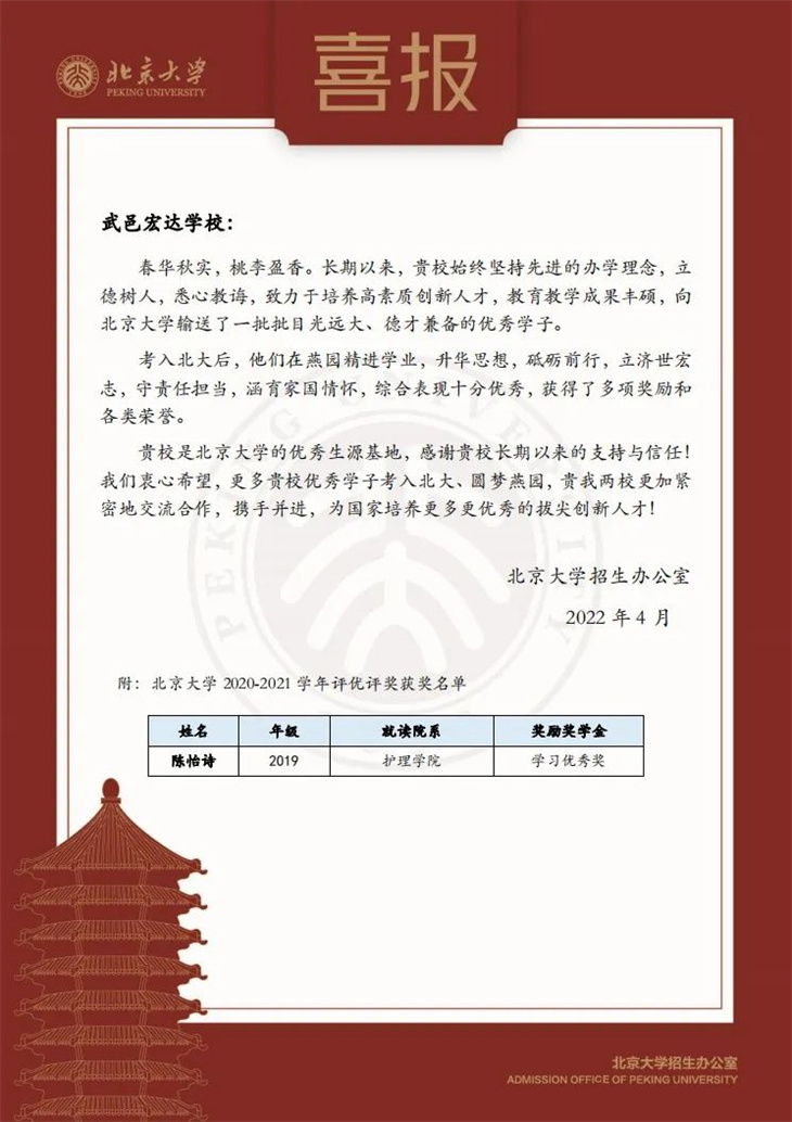 2022年,列害了!武邑宏达学校再次荣膺“清华大学2022年生源中学”奖牌,至此,连续七年,成为清华大学生源中学。