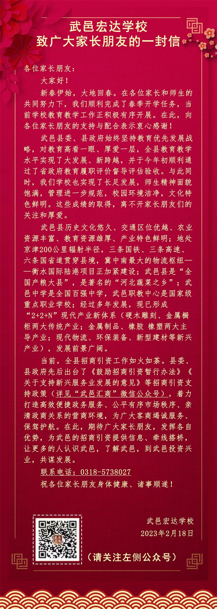 武邑宏达学校致广大家长朋友的一封信