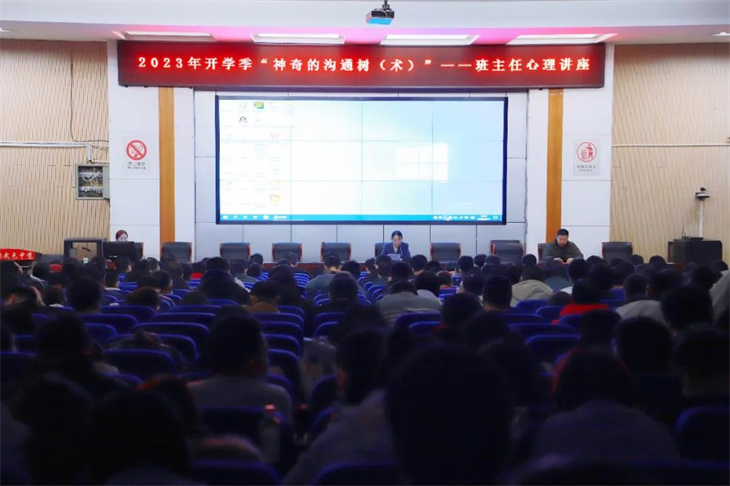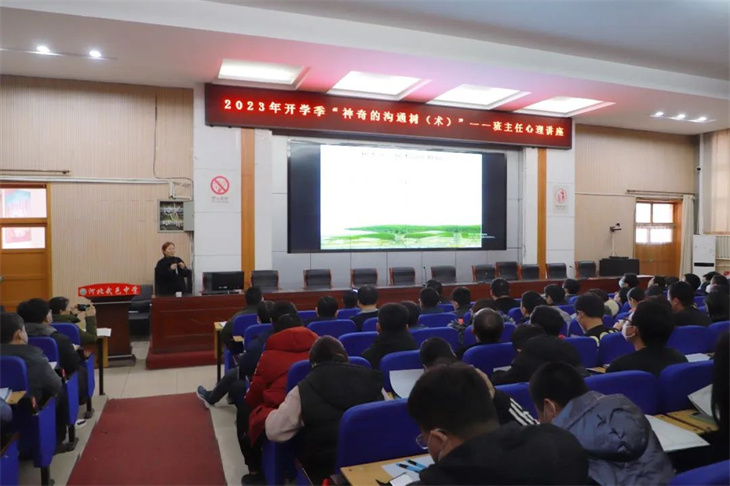 为进一步提高我校班主任的心育能力和水平,加强班主任与学生之间的心灵沟通,2月17日我校组织开展了了“2023年开学季‘神奇的沟通树(术)’——班主任心理讲座”活动。本次的主讲老师是衡水学院赵章留教授,我校副校长赵晓艳,各年级主任,级部主任以及全校班主任老师共同参加了此次心理培训,本次讲座由政教处主任魏红胜主持。