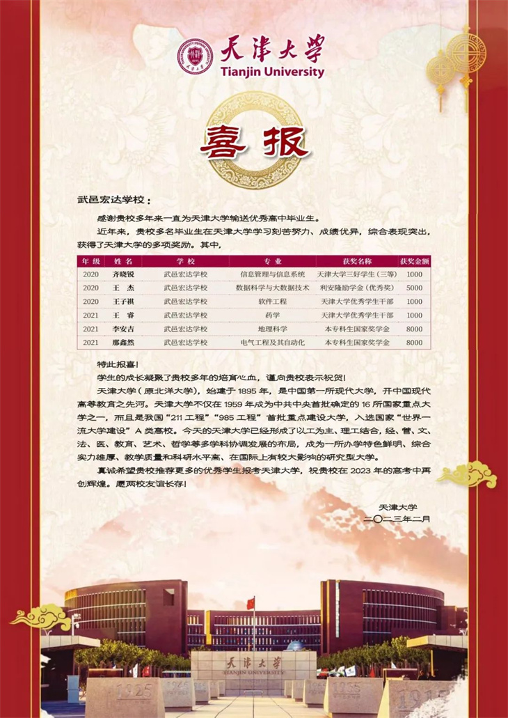 宏达学子的成长凝聚了我校多年的辛勤培育和殷切希望。未来,他们也将继续在自己理想的大学里继续锐意进取、开拓创新!
