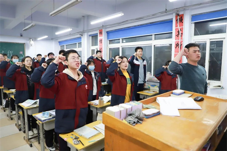 三春花事好,为学须及早,仰首天光,回首书香,眸有星光,不可阻挡,高三学子们斗志昂扬,举起的右拳是他们发起的冲锋信号,我们坚信:一个个色彩斑斓的青春梦想,必会在不舍寸功中开花结果,在矢志不渝的奋斗中出彩闪光!