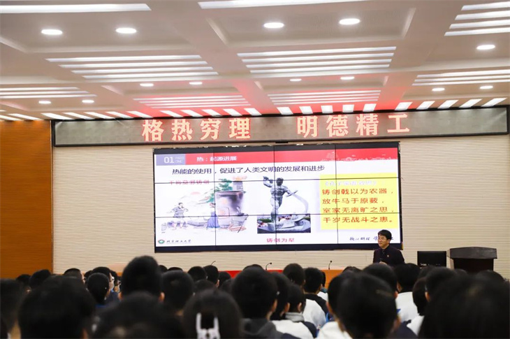 在会议中,金教授以“格热穷理,明德精工”为题向学生们介绍了北京理工大学的学校概况、专业设置、学科优势、招生政策等相关情况,并代表学校欢迎同学们报考北京理工大学,鼓励我校学生在今后的学习中勤奋努力,拼搏进取,在高考中取得理想的成绩。