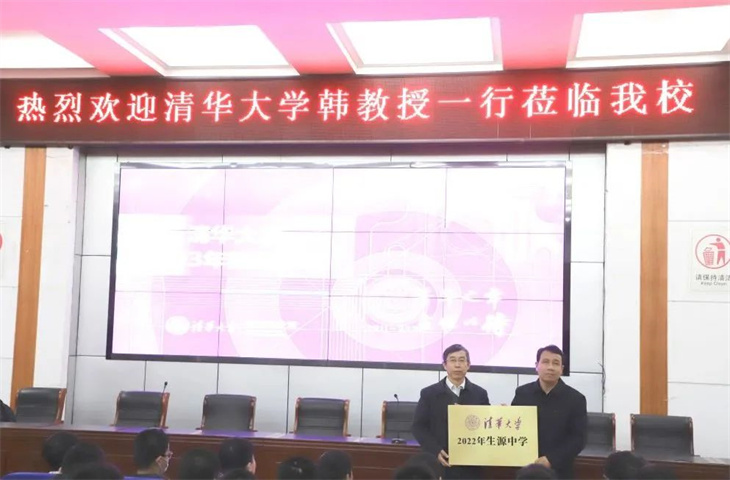 3月25日,清华大学韩赞东教授莅临我校做专题报告,并授予我校“清华大学2022年生源中学”的牌匾,学校领导和师生代表共同见证了这一重要时刻。
