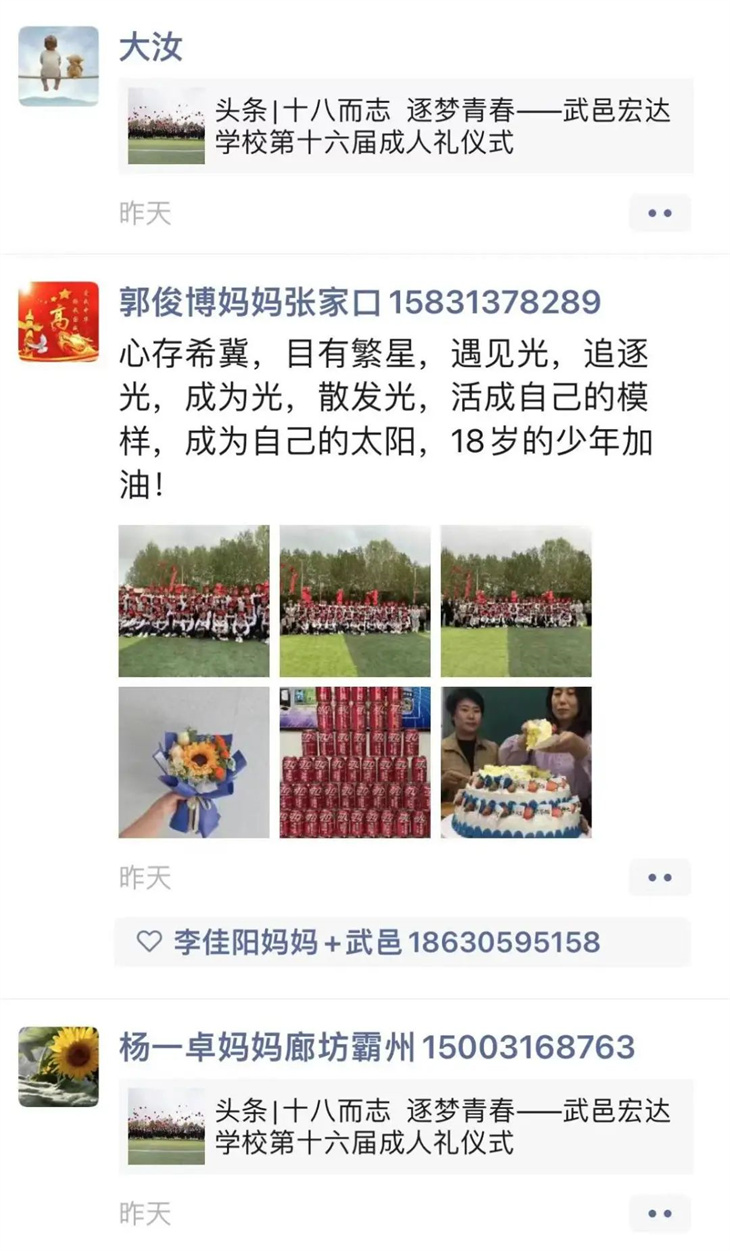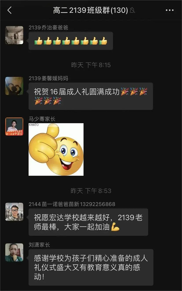 宏达成人礼刷屏朋友圈,来看看家长的心声吧!