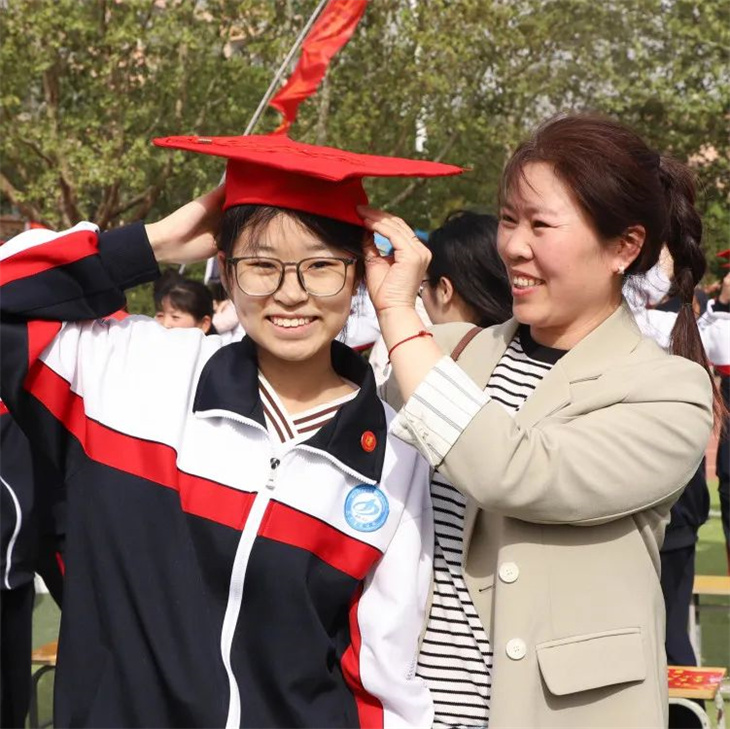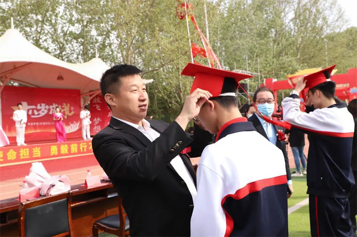 行冠礼,由校领导和家长代表为各班班长戴成人帽,由部分家长为各班学生戴成人帽。戴上成人帽,肩上就又多了一份责任与担当。成人了,要为自己的言行负责,要懂得为父母的付出感恩,更要为国家身体力行尽责!