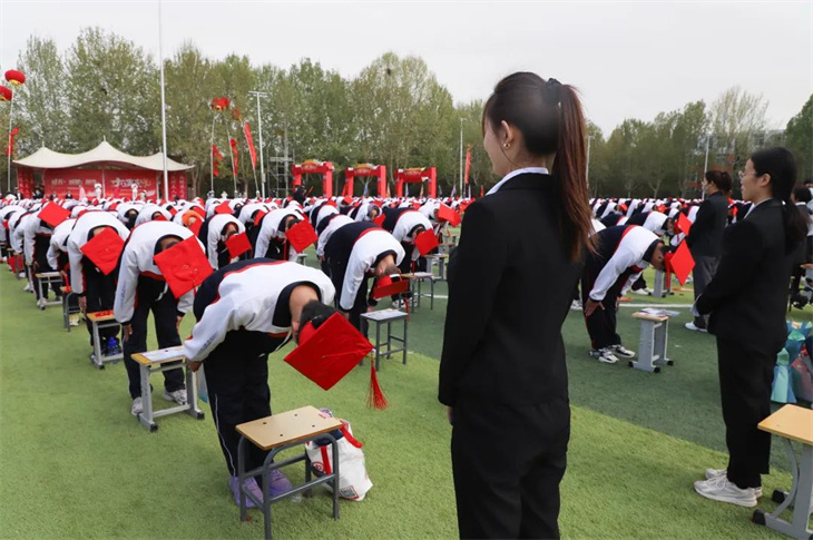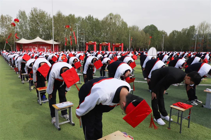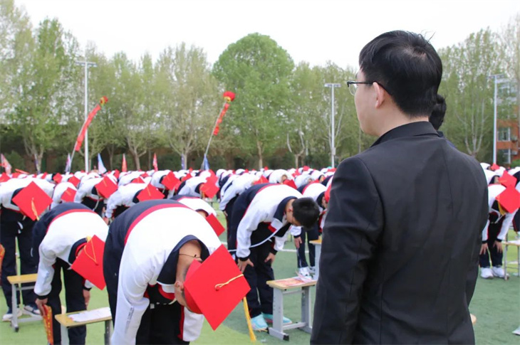 十八年的成长,父母付出了太多的艰辛。精彩的表演后,全体高二同学对在场的父母三鞠躬,表达自己的拳拳赤子之心。“爸爸、妈妈,我爱你!“九十度的弯腰一躬,既是对懵懂少年的告别,也是对美好未来的向往;既是对父母的感恩,又是对自己的鞭策。