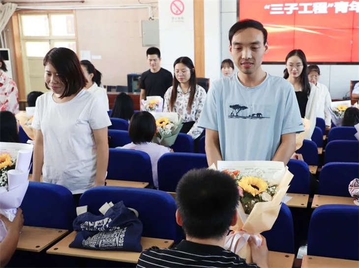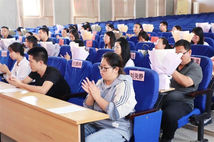 随后青年教师代表肖然老师上台发言。她真诚表达重回母校大家庭的兴奋之感以及对母校和师傅的感激,表示以后要积极回报母校,始终以一名人民教师的标准严格要求自己,以饱满的热情为学生传道、授业、解惑,履行自己身上的光辉使命。